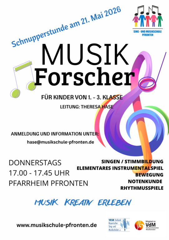 Werden auch Sie Mitglied und unterstützen Sie die Arbeit der Sing- und Musikschule Pfronten e.V.