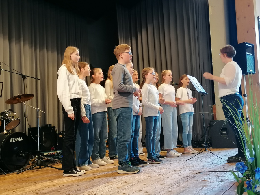 Der Teenie-Chor unter der Leitung von Theresa Hase trifft sich 1x wöchtentlich, um gemeinsam zu üben. Mit Stimmbildung, Kanons, weltlichen und geistlichen Liedern und Bodypercussion finden die Jugendlichen hier einen Zusang zur Musik und können ihre Fähigkeiten vertiefen.